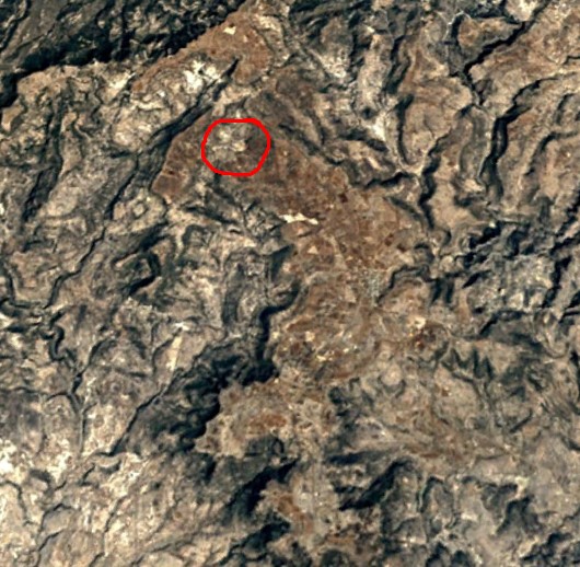 Por la poca resolución de las imágenes satelitales, es posible que no alcances a diferenciar el antes y el después del bordo. En la figura 1, en el lugar donde se construyó el bordo se puede ver una zona verde, esto es debido a los árboles y arbustos que había antes de que se construyera el bordo. En la figura 2, se aprecia como fue removida la vegetación y en su lugar se observa una tierra casi blanca. Si sigues sin distinguir el cambio, colocaremos de nuevo la imagen 2 pero encerraremos la zona con un círculo.