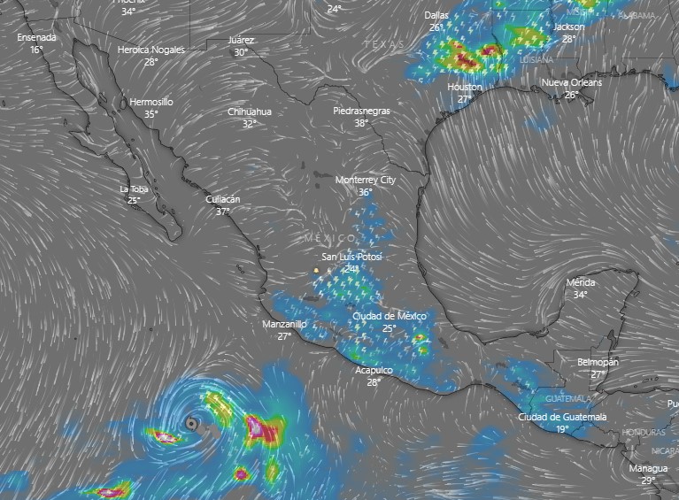 La tormenta tropical Andrés, con vientos de 64 km/h, se desplaza en el océano pacífico alejándose del territorio nacional. La presencia de Andrés está provocando nubosidad, lluvias y tormentas en algunas partes del país. Se espera que sus efectos continúen durante los próximos días.