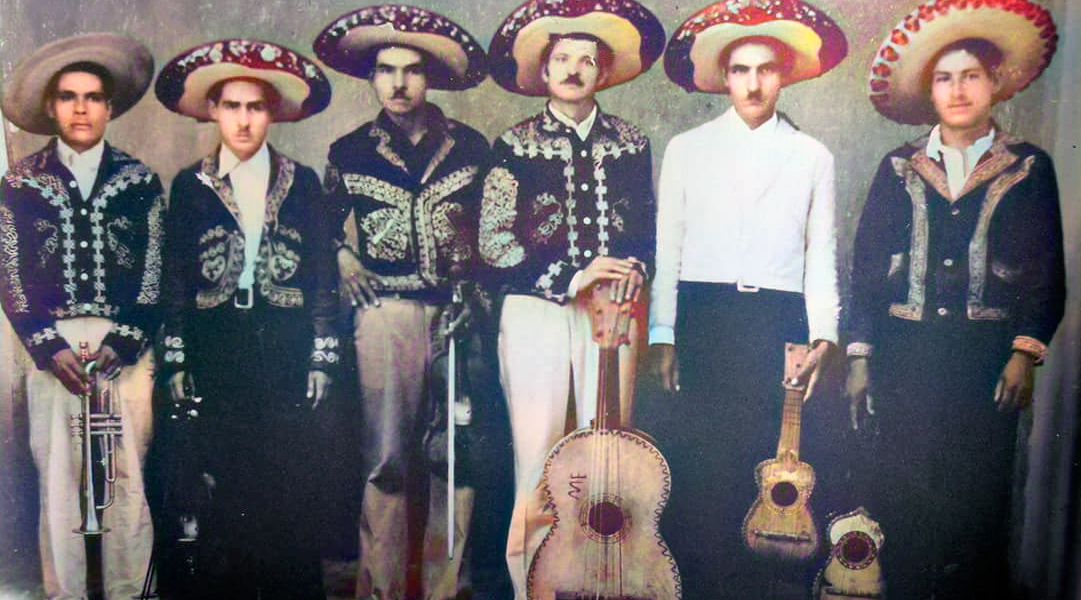En la fotografía podemos ver a los Olazaba, quienes amenizaron durante muchos años las festividades en la región. Los vemos posando con sus trajes y sus instrumentos en mano.