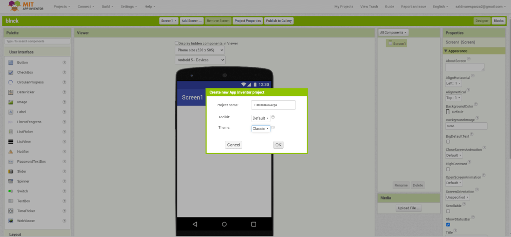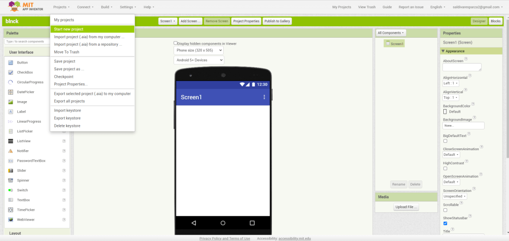 - Lo primero que tenemos que hacer es crear un nuevo proyecto en App inventor.