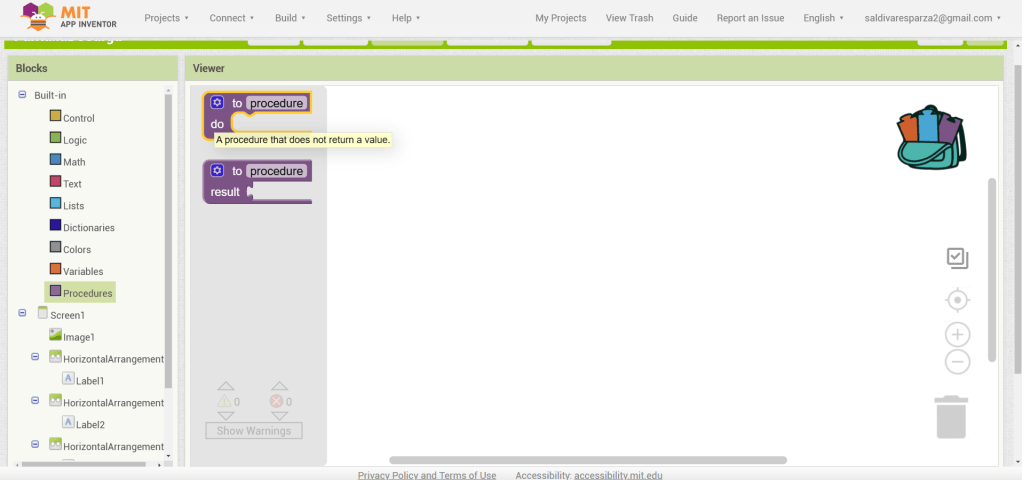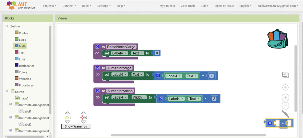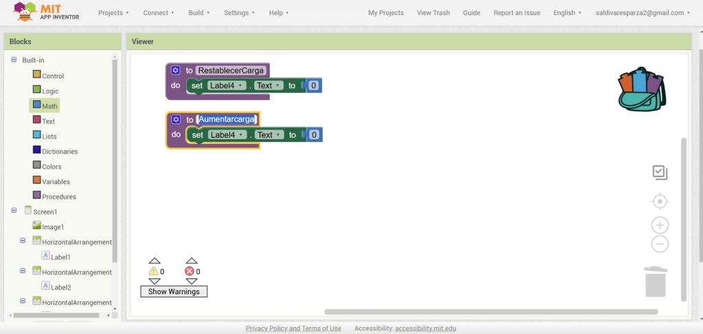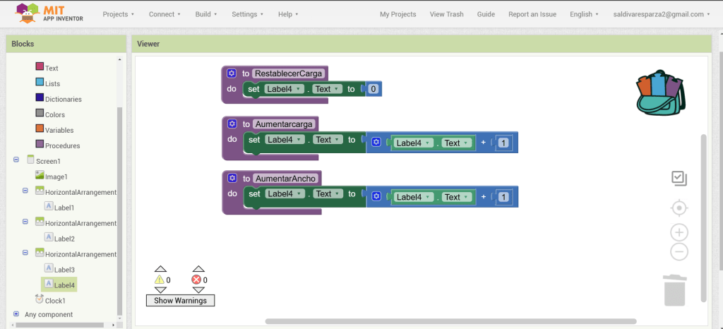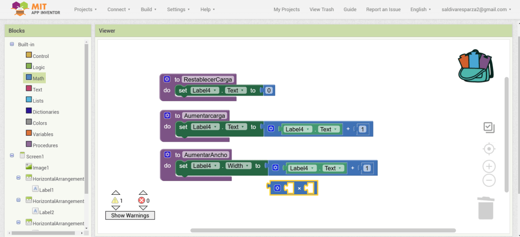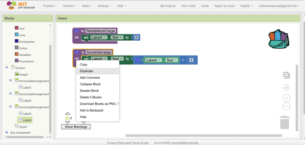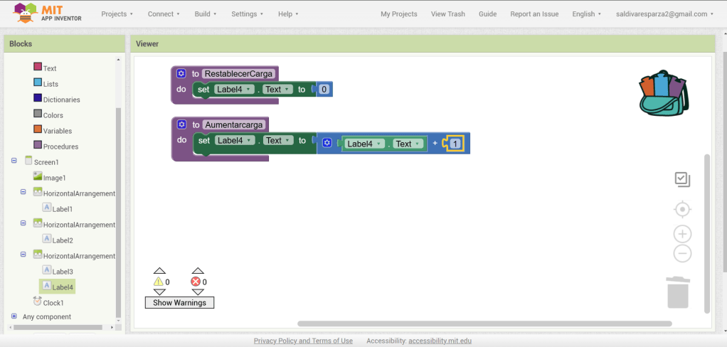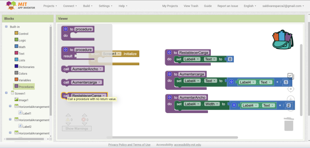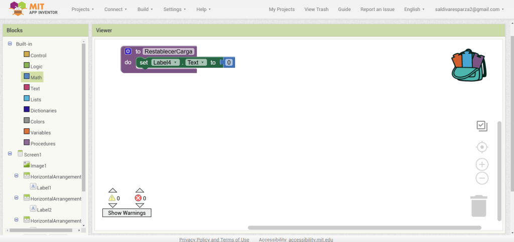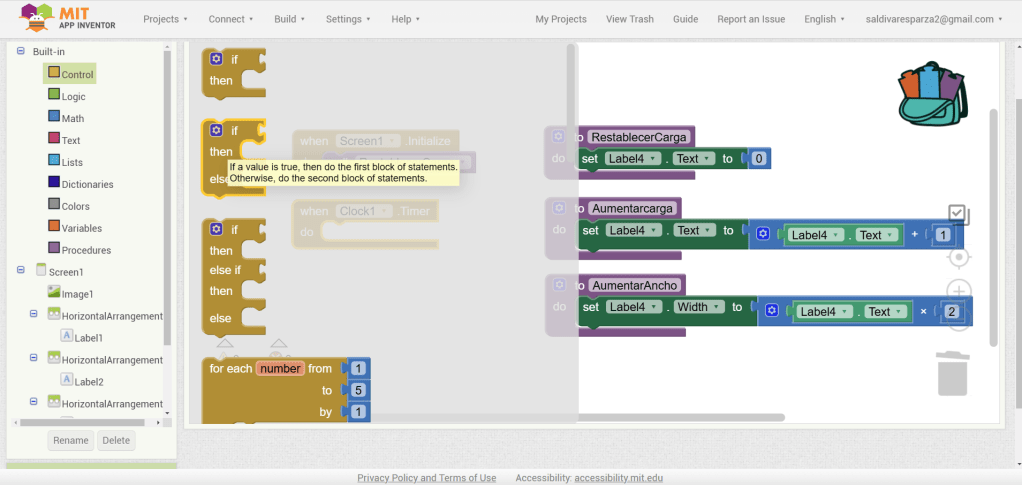 31. Hacemos clic ahora en Screen1 y seleccionamos el evento que nos permite cargar procedimientos cuando la pantalla inicia. Ensambalamos el procedimiento de RestablecerCarga.