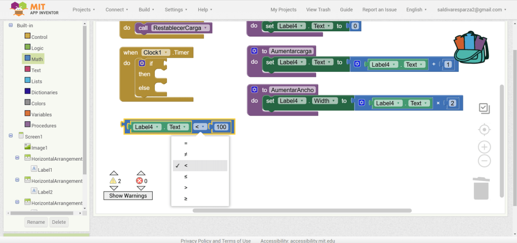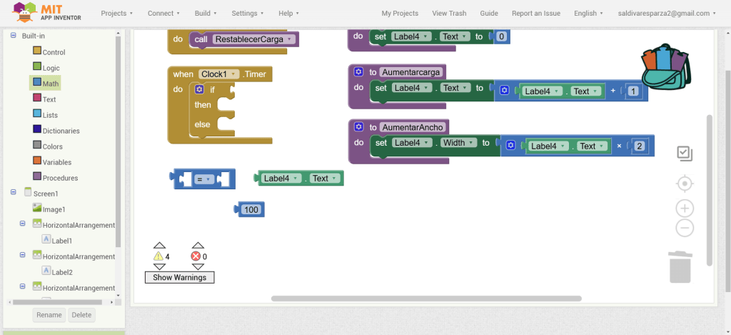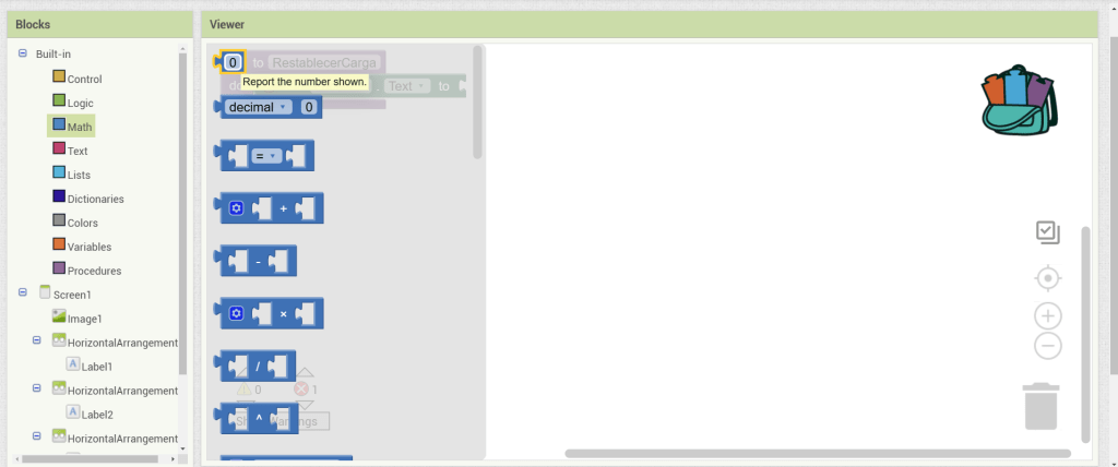 24. Hacemos clic en los bloques de matemáticas y elegimos el bloque de número. Lo ensamblamos en el bloque anterior.