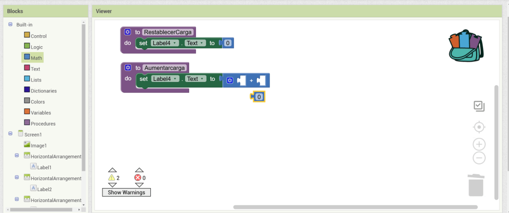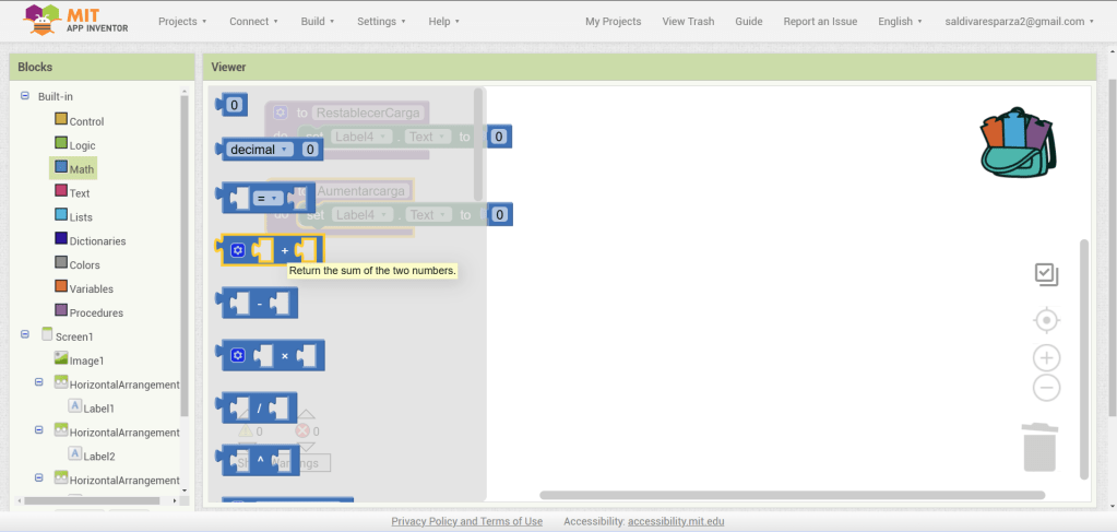 25. En los bloques de matemáticas buscamos una suma y lo insertamos donde está el cero.