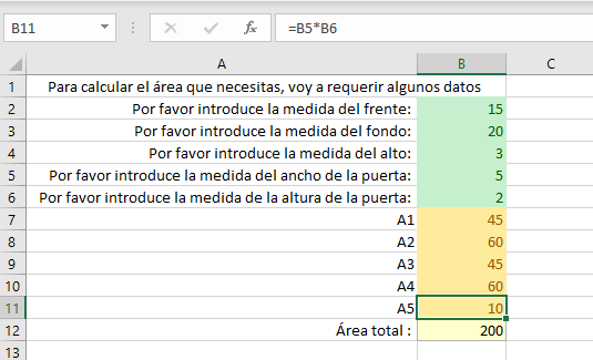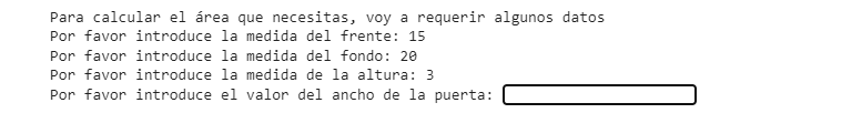 - Mostrar «Para calcular el área que necesitas, voy requerir algunos datos»